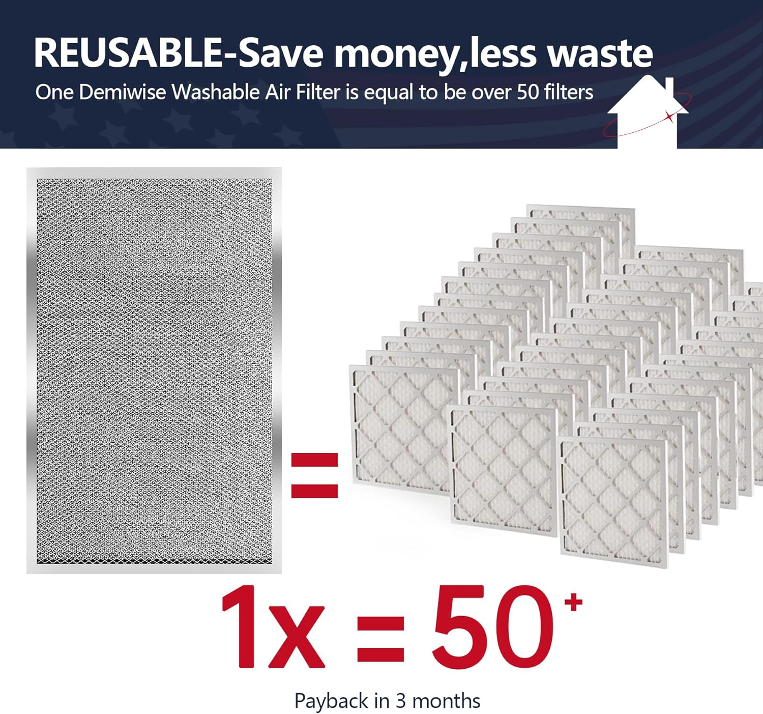 Demiwise 16x25x1 Electrostatic Air Filter, 8 Stage Washable Aluminum AC/HVAC Furnace Filter, Reusable Permanent Air Filter, Lasts a Lifetime, Easy to Install, Healthier Home/Office Environment