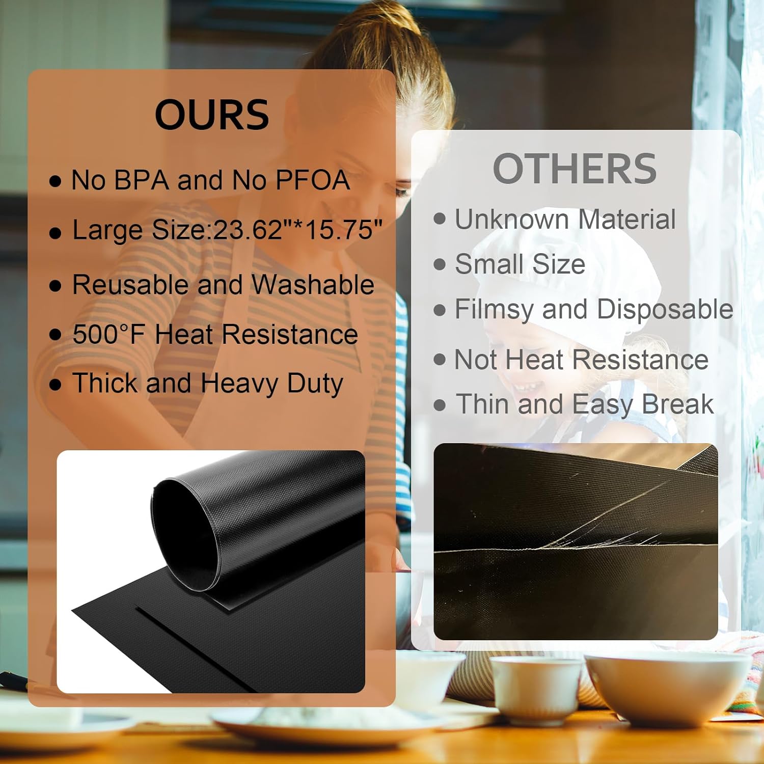 【Customized Size&Multi Functional】Instead of silicone baking mat and disposable foil oven liners, this PTFE mat is made of fiberglass, and it is easier to clean and demould. This oven liner for bottom of gas oven is16 x 24 inch 0. 28mm thick heavy-duty. You can cut it in any size to fit your different size of ovens like electric & gas ovens, or toaster oven, grill,BBQ mat, baking mat, and pan liner, air fryer liner, pastry mat, dough mat, gas stove burner liners, microwave mat